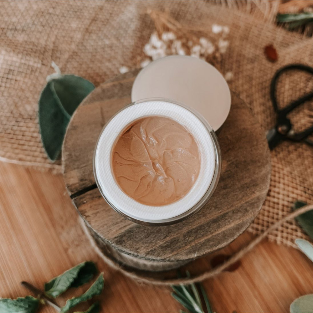 Coco-Caprylate/Caprate, Silica, Zea mays (Corn) germ oil, Dicaprylyl carbonate, C10-18 triglycerides, Glyceryl stearate, Glyceryl dibehenate, Caprylic/capric triglyceride, Hydrogenated castor oil, Tribehenin, Glyceryl behenate, CI 77891 (Titanium dioxide), Parfum (Fragrance), Hydrogenated ethylhexyl olivate, Stearalkonium hectorite, Caprylyl glycol, Propylene carbonate, CI 77492 (Iron oxides), Tocopherol, Mentha piperita (Peppermint) leaf water, Rosmarinus officinalis (Rosemary) leaf water, Salvia officinalis (Sage) leaf water, Helianthus annuus (Sunflower) seed oil, CI 77491 (Iron oxides), Hydrogenated olive oil unsaponifiables, Aluminum hydroxide, CI 77499 (Iron oxides), Glycolipids, Citric acid, Aqua (Water), Sodium benzoate, Potassium sorbate.